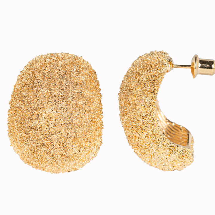 This golden pair of stainless steel earrings features a bold, elegant look with unique texture adding a subtle shimmer. Weighing imately 10g, they are durable, tarnish-resistant, and designed for all-day comfort. With a one-size-fits-all design, these earrings are a perfect blend of style and sophistication for any occasion.
