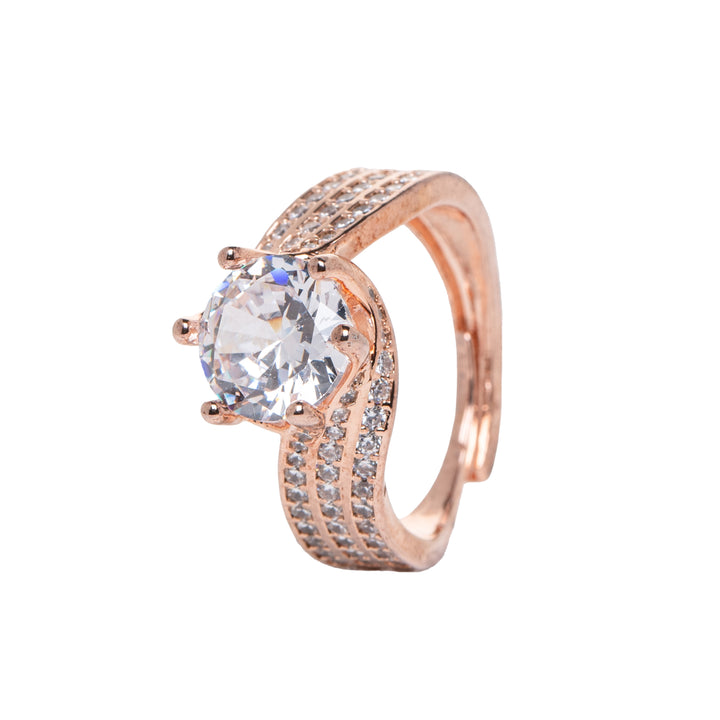 This elegant adjustable ring is crafted from durable stainless steel with stunning 18-carat gold-tone finish, providing a polished and timeless look. Weighing imately 9 grams, the ring features an adjustable band for a comfortable, customized fit. At the center, a large, stunning stone sits prominently on top, drawing attention and adding a bold statement to the design. The band is further adorned with smaller stones, adding subtle sparkle and enhancing the overall aesthetic. With its anti-tarnish coating, this ring ensures long-lasting shine and protection, maintaining its beauty over time. Perfect for both everyday wear and special occasions, this ring is a sophisticated addition to any jewelry collection.