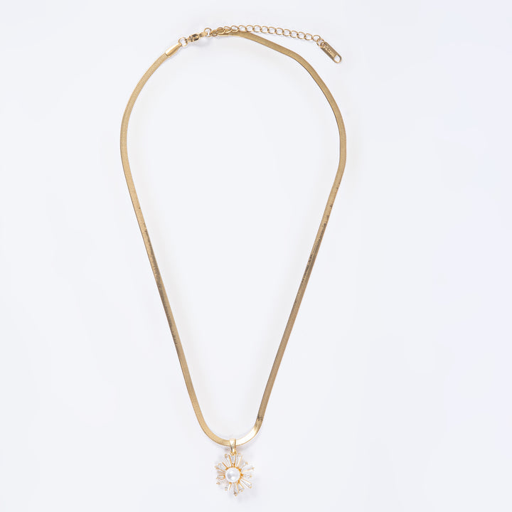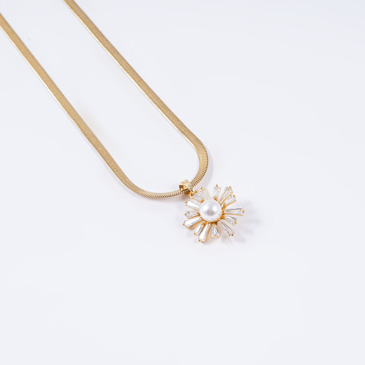 This elegant flower shaped pendant with pearl and baguetts adds a touch of femininity and grace to your jewelry collection. Designed with intricate detailing, this piece embodies nature’s beauty while maintaining a modern, stylish appeal. Weighing imately 20g and crafted from high-quality stainless steel, it is tarnish-resistant and built for long-lasting shine. Whether worn as a statement piece or paired with other accessories, this model is perfect for elevating both casual and formal looks.