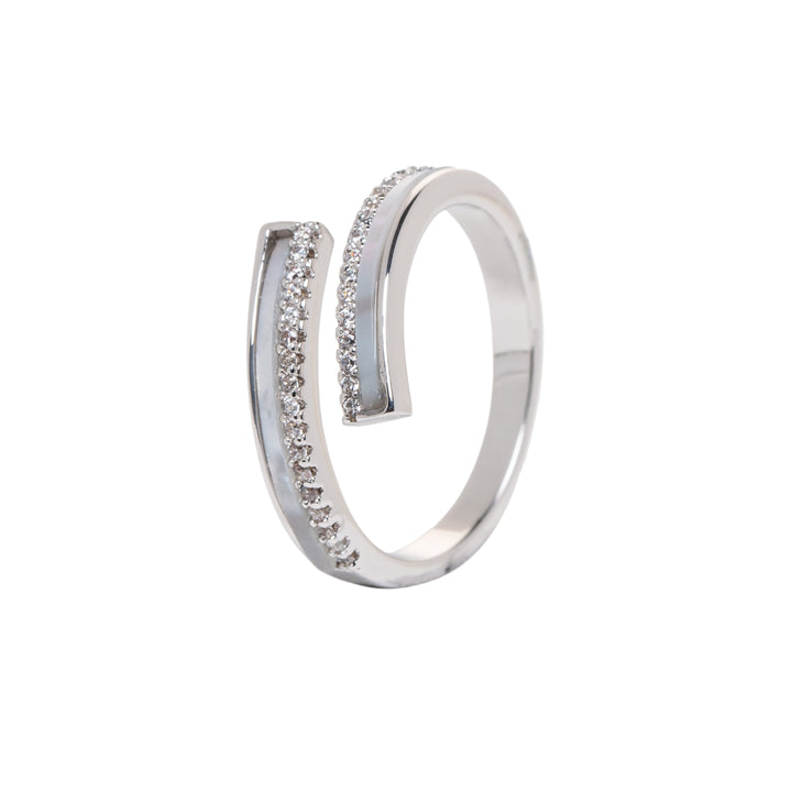 This elegant adjustable ring is crafted from stainless steel with an 18-carat gold-tone finish and an anti-tarnish coating, ensuring long-lasting shine. Weighing imately 2.5 grams, it features a beautifully designed band with an onyx-like stone at the center, surrounded by a stunning overlay of white rhinestones. The one-size adjustable band ensures a comfortable and secure fit for any wearer. This ring's sophisticated combination of dark onyx-like material and sparkling rhinestones makes it a perfect accessory for adding a touch of luxury and elegance to any outfit, ideal for both casual and formal occasions.