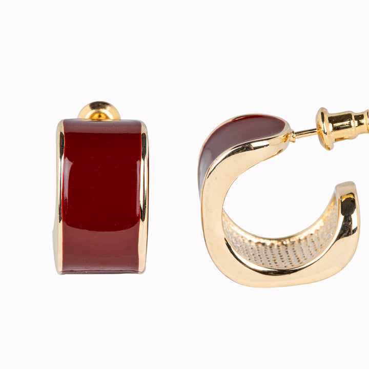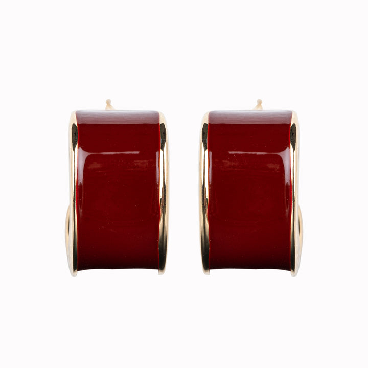 This golden pair of stainless steel earrings features a stunning red colored enamel over golden base, creating a refined and elegant look. Weighing imately 8g, they are lightweight, durable, and tarnish-resistant, making them ideal for both casual and formal wear. With a one-size-fits-all design, these earrings add a unique touch to any outfit.