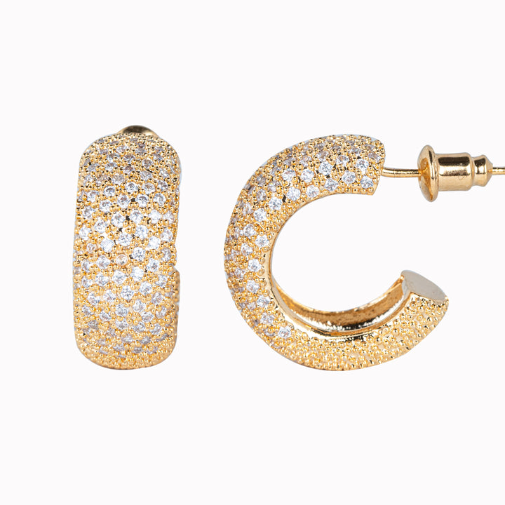 Elevate your style with this golden earrings, featuring delicate diamond work for a subtle yet elegant sparkle. Crafted from high-quality stainless steel with 18 carat gold tone finish, these earrings are durable, tarnish-resistant, and lightweight at imately 12g. Their timeless design makes them perfect for both everyday wear and special occasions. With a one-size-fits-all design, they offer a comfortable and stylish fit, adding a touch of sophistication to any outfit.