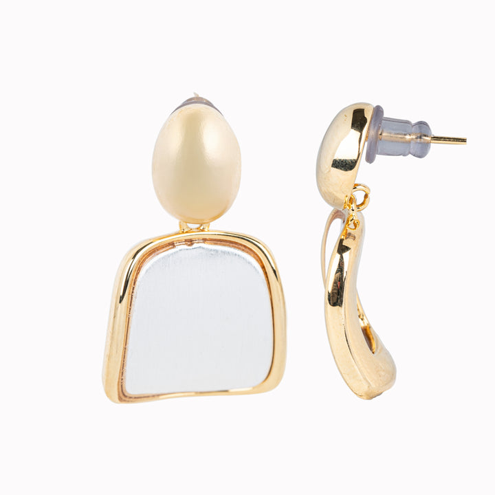 White Gold and Gold Tone Hanging Earrings